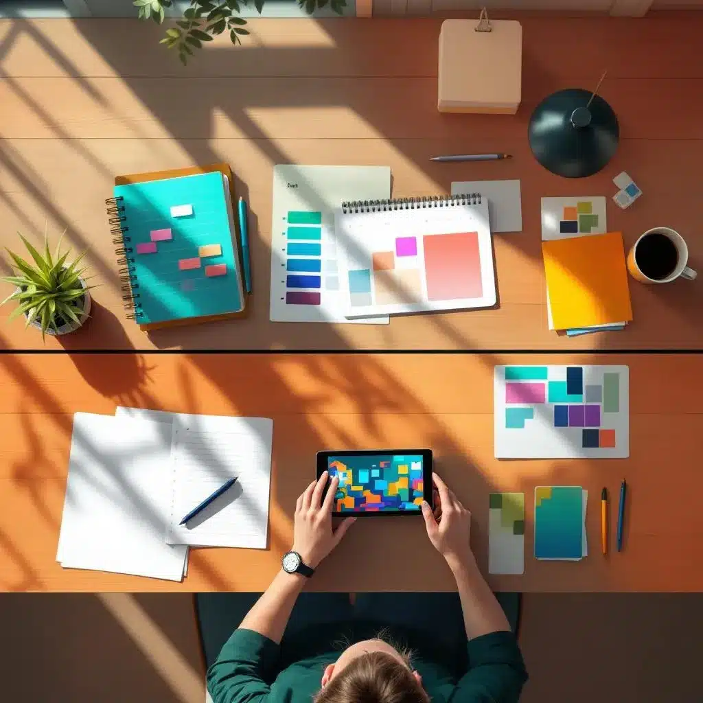 Uma boa rotina não nasce do nada; ela é construída com intenção. E para isso, não basta só disciplina. É preciso criar um ecossistema que sustente sua criatividade. Isso envolve tanto as ferramentas que você usa para organizar o caos quanto os hábitos que você cultiva para manter a fonte de inspiração sempre cheia. Vamos ver como combinar o analógico e o digital para construir um fluxo de trabalho que seja a sua cara.